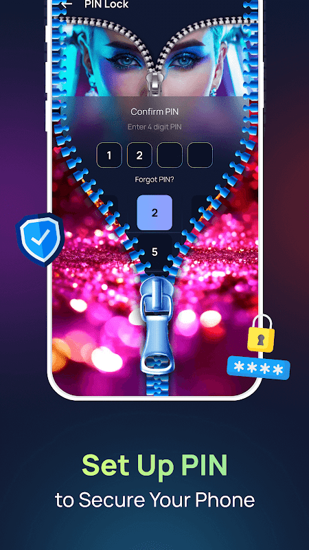 Bloqueo de PIN: la aplicación Zip Screen Lock & Wallpapers ofrece una función de bloqueo de PIN. Le permite proteger su pantalla de bloqueo con cremallera con un código de acceso de 4 dígitos. Después de descomprimir, debes ingresar el PIN correcto para acceder al dispositivo. Esto agrega una capa adicional de protección y ayuda a prevenir el acceso no autorizado. Puede habilitarlo o deshabilitarlo según sus preferencias.