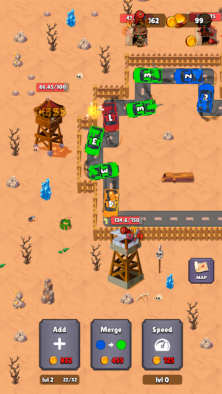 Comienza tu aventura con un solo coche y fusiona vehículos para crear máquinas destrozazombis imparables. Tus coches disparan zombis automáticamente, destruyen torres zombis y expanden tu territorio. Con cada nivel, el desafío aumenta: ¿estás listo para la batalla definitiva?