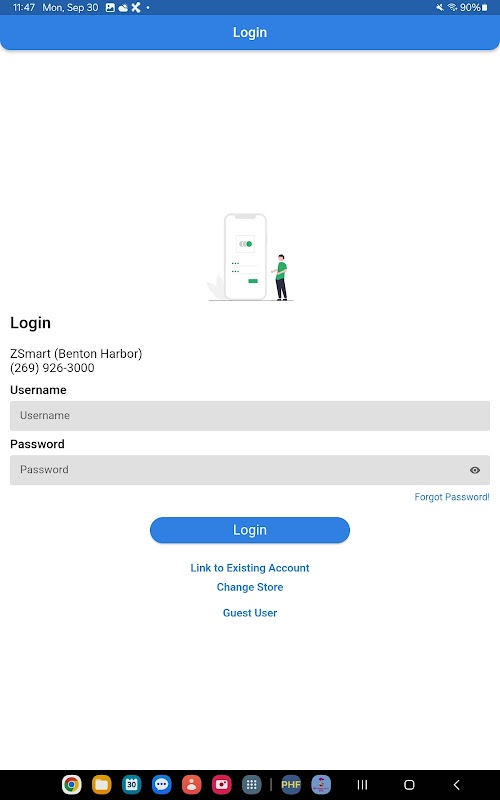 Puede utilizar el mismo nombre de usuario y contraseña para iniciar sesión en su cuenta ZSmart existente que en su cuenta del sitio web de pagos en línea. Si no tiene pagos en línea configurados, regístrese haciendo clic en el enlace "Registrarse" en la parte inferior de la página de inicio de sesión para configurar pagos en línea. Una vez que seleccione este enlace, se le pedirá que cree un nombre de usuario y contraseña para vincular esta aplicación a su cuenta ZSmart activa. Necesitará los números de cliente y de contrato que figuran en su contrato de alquiler existente con ZSmart. También puede llamar a su tienda ZSmart local y ellos le podrán brindar esta información.