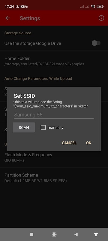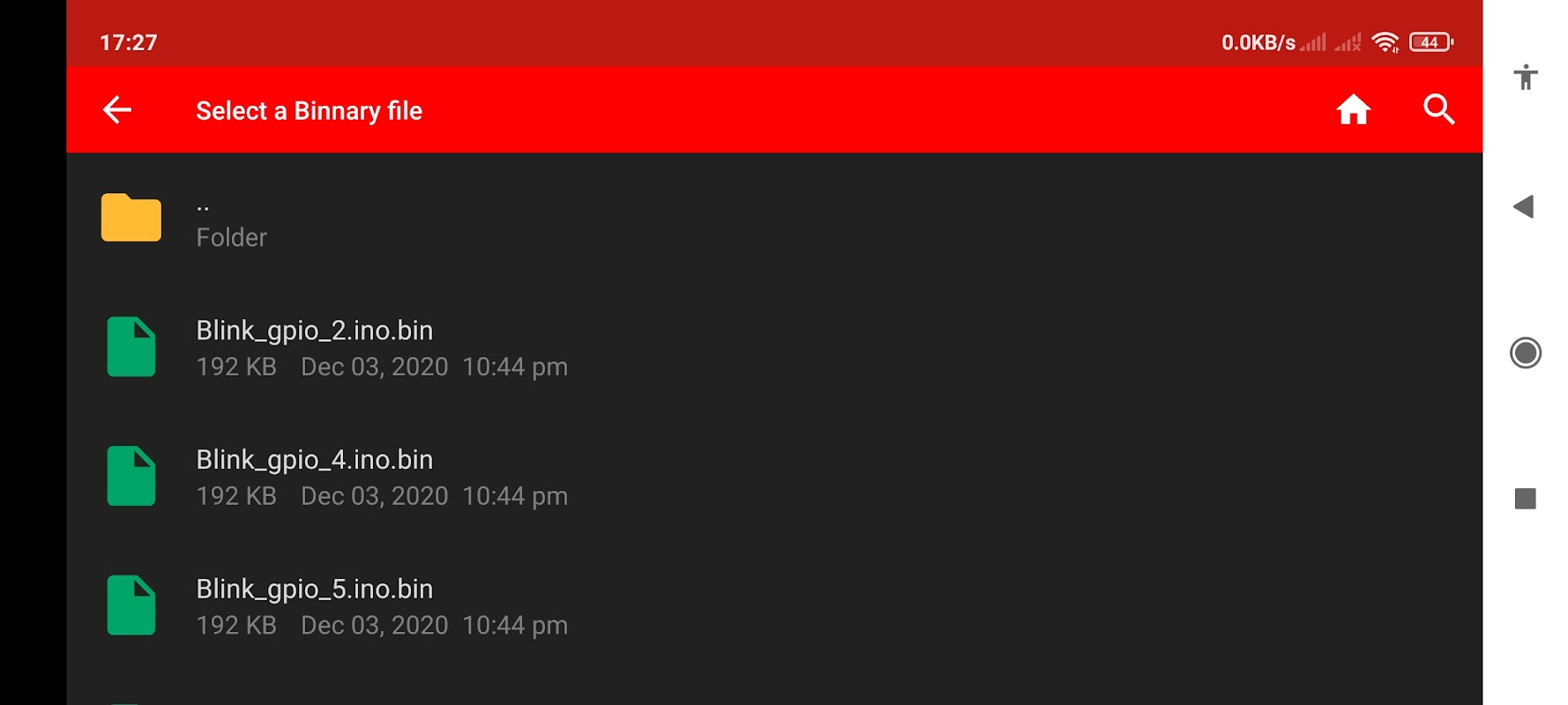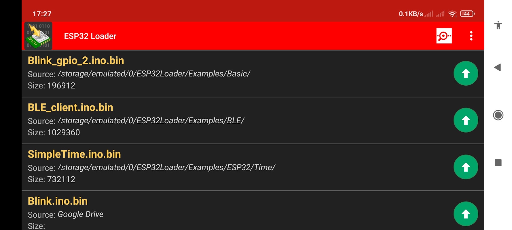 - Warning: try it on your own risk: it can damage your hardware (Android or ESP board) or lead to data loss (binary file or any Android data).