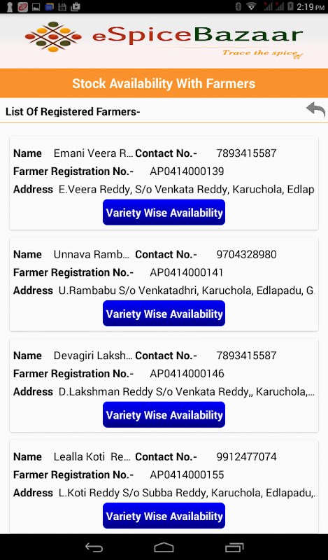 As part of eSpice Bazaar initiative by Spices Board of India, Field Coordinator mobile app shall assist the Field Coordinators to capture details of Farmers, their Farms, Crops & Farming practices, Yield etc. in real time straight from the field. The app has in-built GPS capabilities to identify the farm location. App shall also provide real time weather information, market price data and directory of service providers.