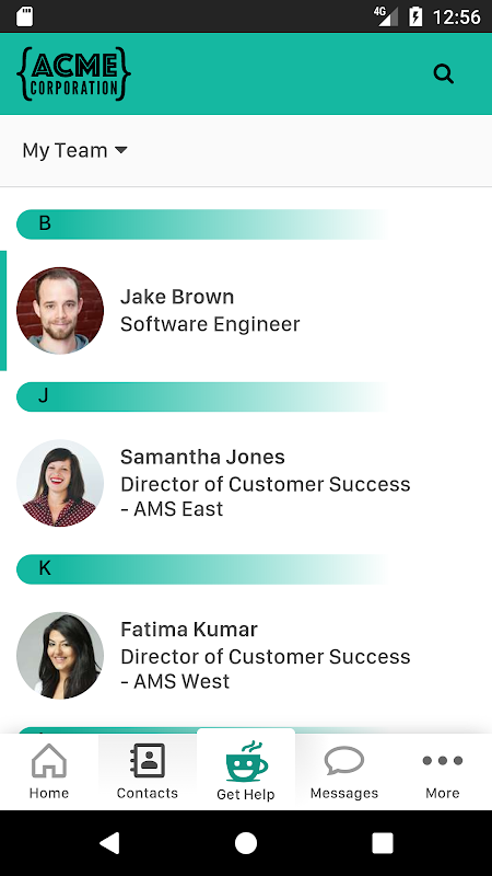 4. Contact directory: search and find other people in the company, define favorites, view contact info