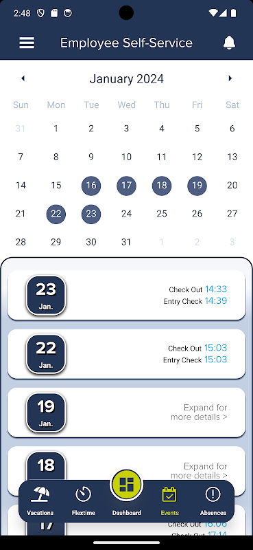 The Essential app allows employees to clock in using a mobile device at the workplace.