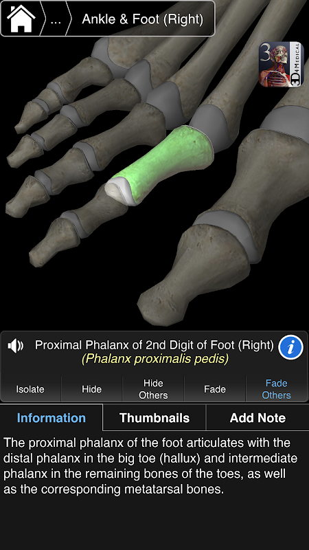 Essential Skeleton 3 is responsive, visually stunning and effortless. The app is fully 3D, meaning that you can easily manipulate the skeleton and individual bones, as well as view them in isolation from any angle. Our new Multiple Selection Mode allows you to select multiple bones and isolate, hide or fade them.