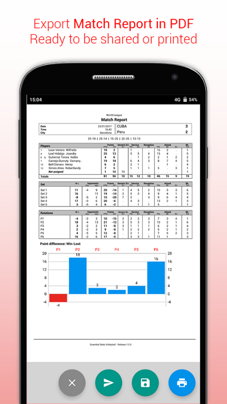 - Display set, rotations and player statistics and filter them by set or rotation.