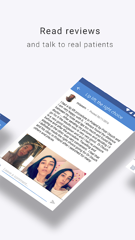 More testimonials - patients can upload reviews with pics straight onto the app