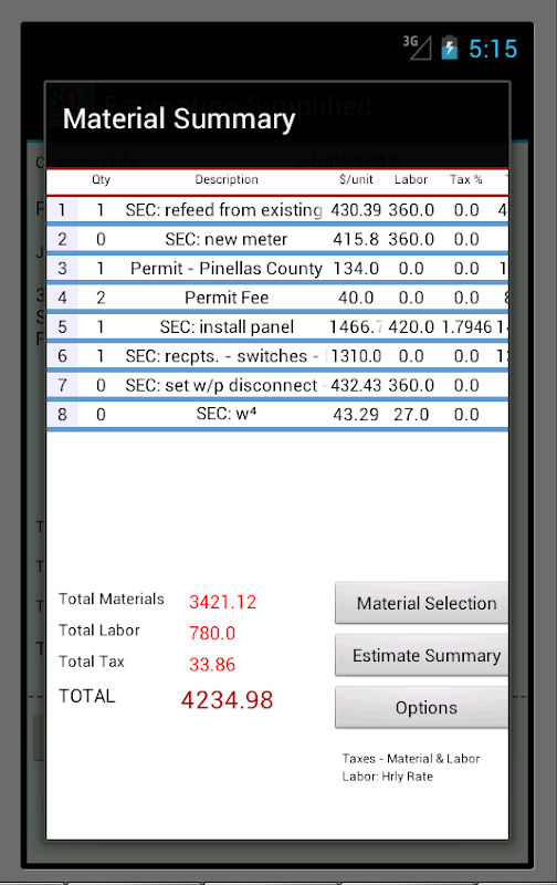 Create quick, accurate estimates on your Android Device.