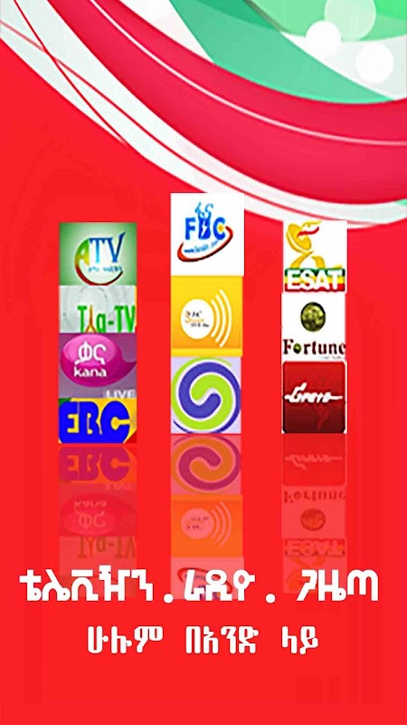 EthioMedia will provide you all Ethiopian media (TV/RADIO/NEWS). You Can pause live Tv. All news and magazine sites, Radio channels in one compact app. Automatically updates all channel. KANA TV, (EBC 1,2,3), ADDIS TV, TGRAY TV, AMHARA TV,SHEGER FM, ZAMI RADIO, REPORTER MAGAZIN, ADDIS ADMAS ...and much more. Enjoy!