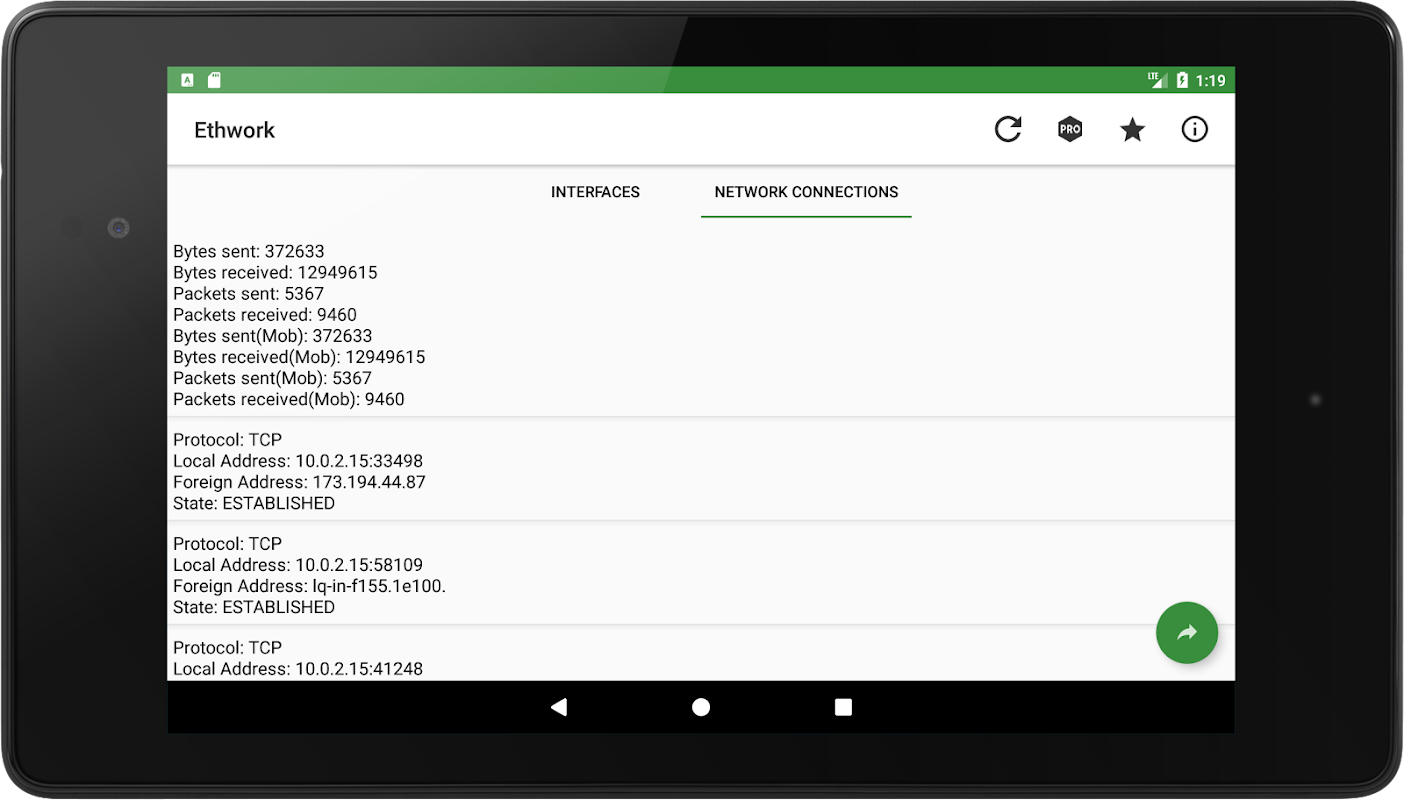 Ethwork - Simple Android application for displaying all information about your system network interfaces and network netstat.