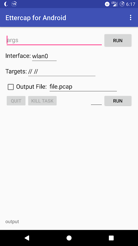 Now you can use Ettercap from your phone! This app uses the command-line version of Ettercap as a backend, and overlays a GUI on top of it to control it. You can set your arguments, targets, and even an output file to capture the packets.