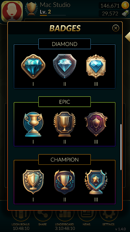 A week long league is running in the game which awards the badges. Participate in the league and get minimum of 100 league points to get promoted to next rank league. Receive badges to showcase your skills.