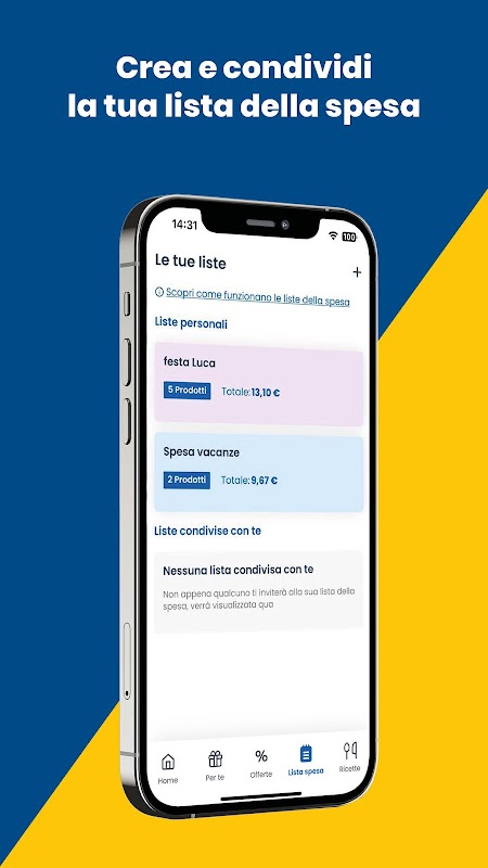 Dedicated Family offers and important benefits when the monthly spending thresholds are reached. Eurospin Family is designed to allow you to have all our offers and even more in your pocket. Furthermore, you can make your own shopping list by choosing products directly from our assortment, and share it in a practical and quick way.