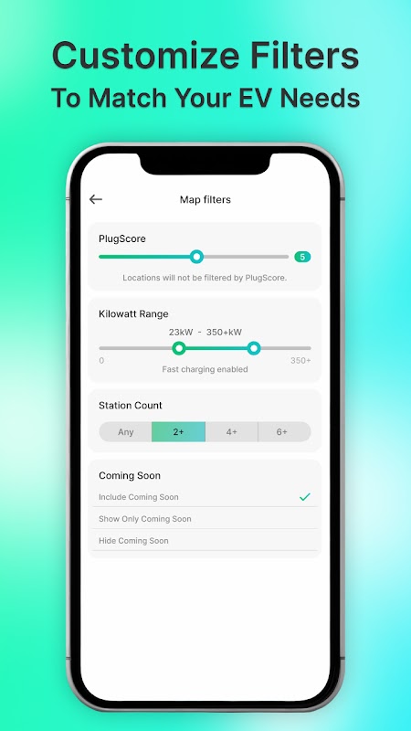 - Works with all your EVs: Manage one or more vehicles and only see compatible chargers.