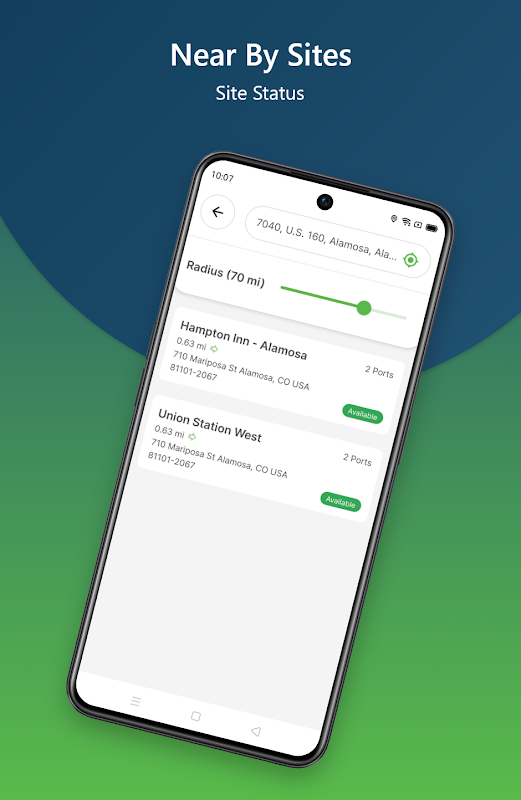 - Details Site Info Screen: You can view detailed information about charging stations, including location, Availability, Amenities, Pricing, Opening times and more.