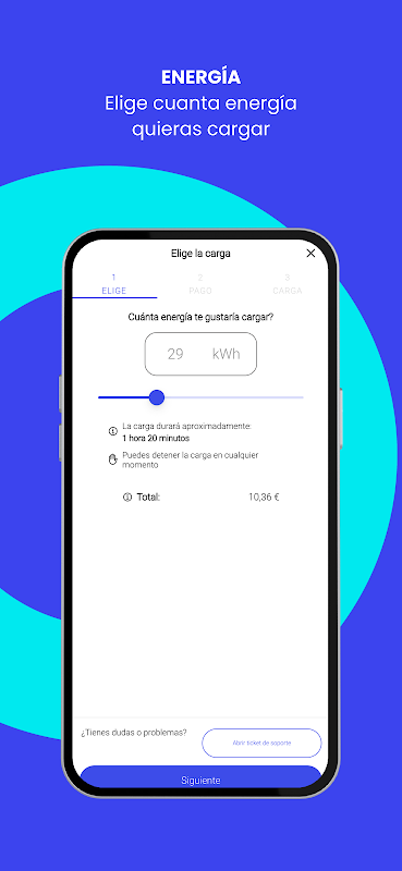 EVcharge shows the location, information and status of the different chargers, allows the customer to activate them and initiate a charge, graphically showing the process in real time.