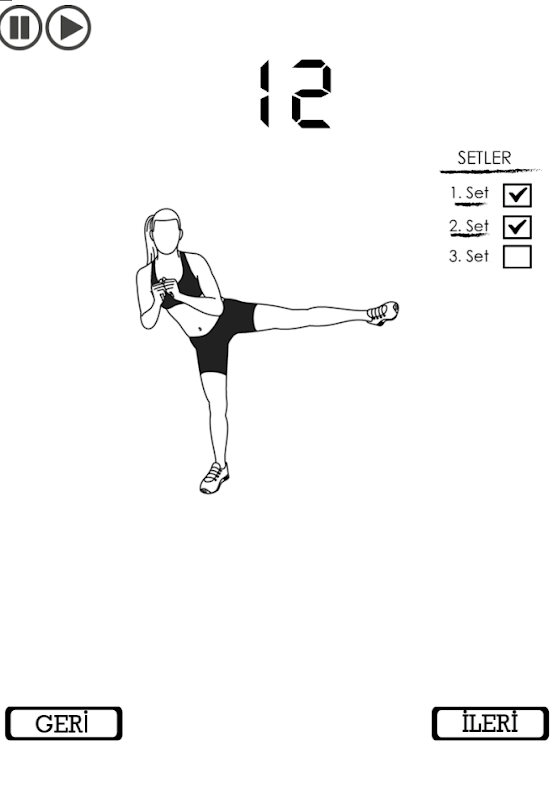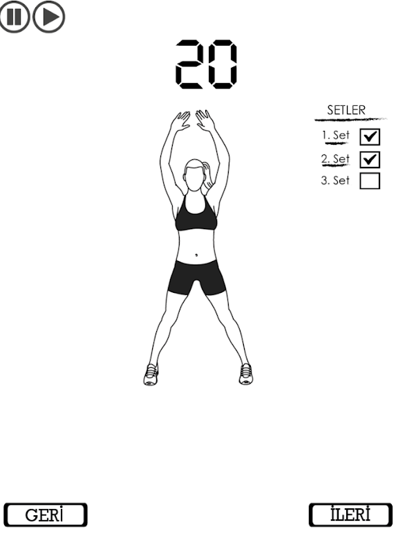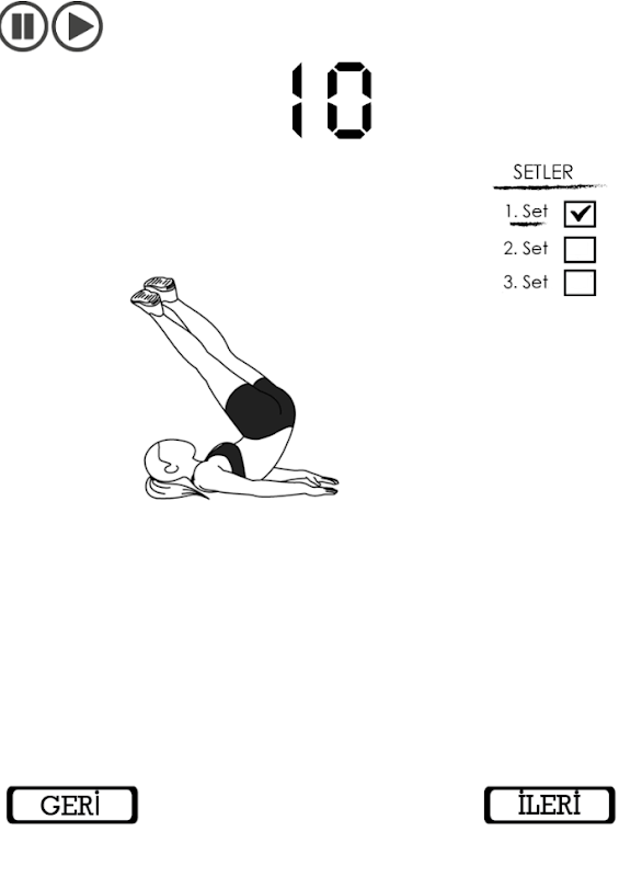 Each exercise is 30 seconds from 3 sets, and 15 seconds between breaks. The application will guide you.