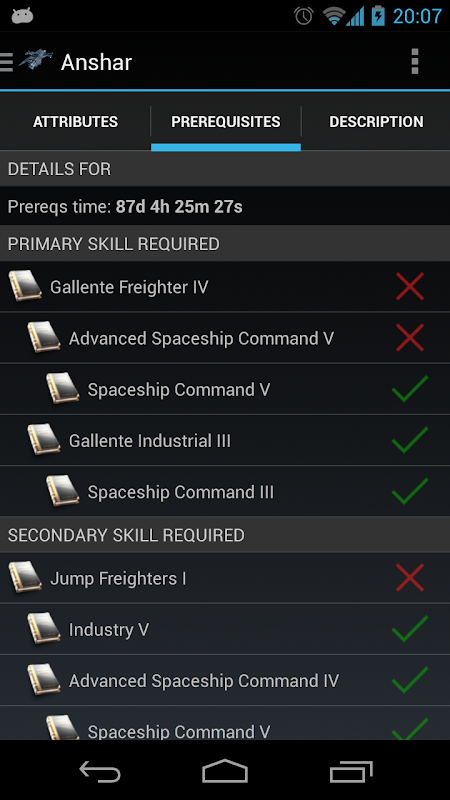 • View the time it takes to train for skills and items