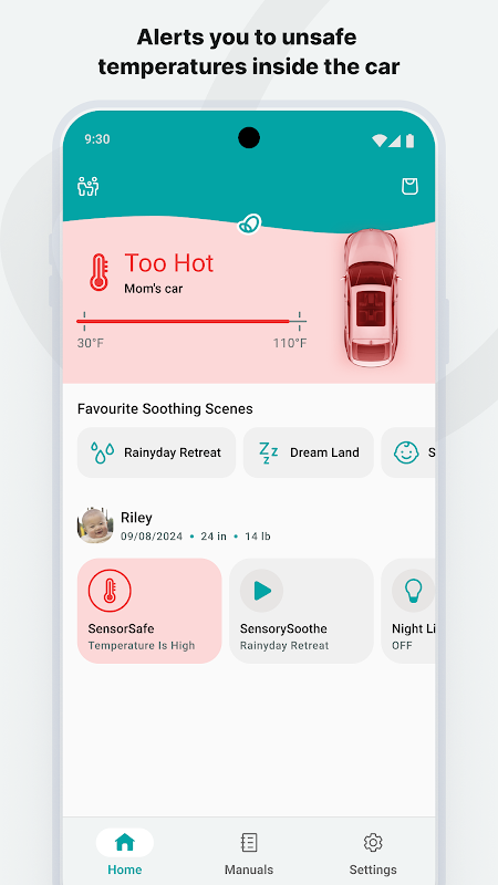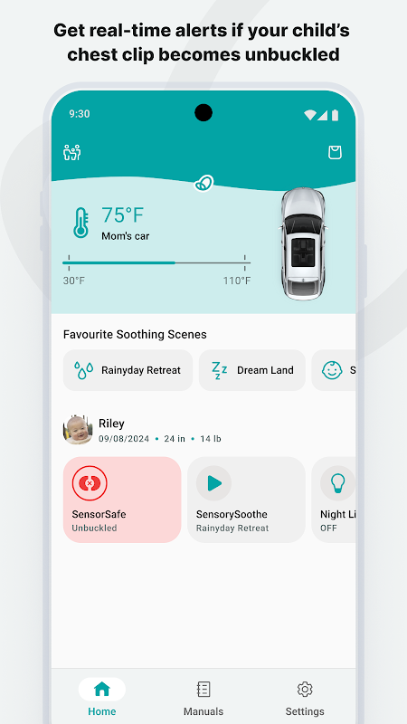 SENSORYSOOTHE is the first-ever integrated soothing system built directly into the handlebar of your infant car seat. No need for portable soothers that could become projectiles in a crash—SENSORYSOOTHE provides a safe and seamless way to calm your little one on the go and keep you focused on the road. Create soothing scenes in the app with lights, sounds, and songs tailored to your child’s preferences, then activate them effortlessly through the app or using Google Assistant.