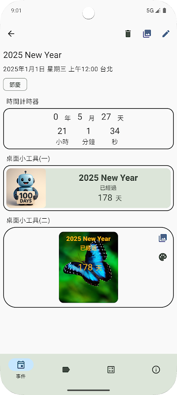 Count up or count down days, hours and minutes for your important or favorite events. You can manage your events easily. You can add important event counter widget on the home screen to remind you when you are using Android devices. The event counter widgets will show the days, hours and minutes left to or after from a specified date.