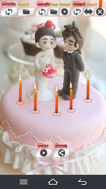 30 kinds of candles , stars, hearts , such as special effects. Like a real candle and admire the beautiful event .