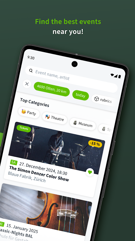 Whether it's a concert, theatre show or street food festival: with the filter options, you can find exactly what you want in no time at all. All the information you need is just a tap away. Save events directly to your calendar or share them with your friends.