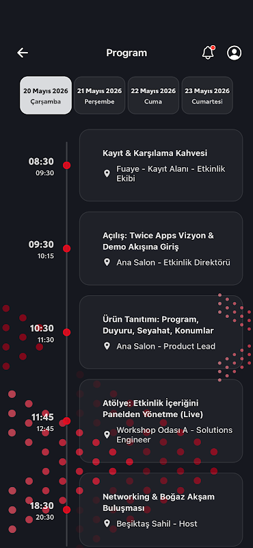 With the application, users can easily join events via QR/code/link, access program schedules, announcements, hotel/transportation information, support, and destination content. They can view all the events they attend in one place.