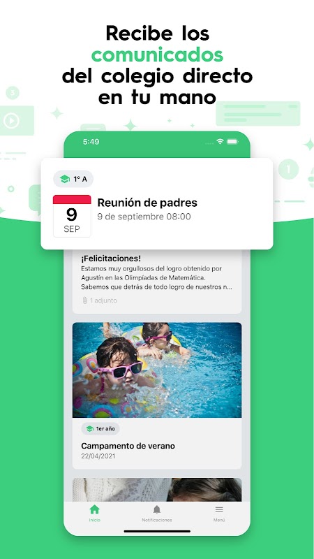 Communications are more interactive than ever. In addition to a plain text message, you can open links with a touch to connect to a video call, fill out a form, access the educational platform, external sites or shared documents. You can also open files, view photos, play videos and audios, sign up for activities, and more.