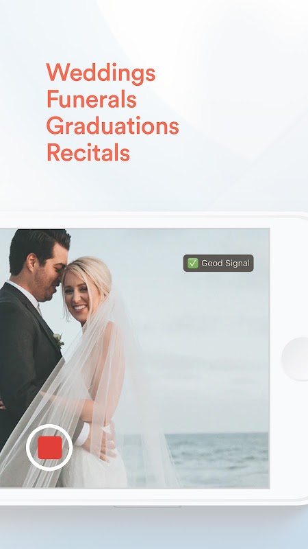 Bad signal? Different time zones? No wedding videographer? No problem! While you are LIVE, your phone is also filming everything in glorious HD. So, the moment you stop the live stream, a top-quality video will automatically save to your phone and our server, so you can watch it, share it and post it over and over again.