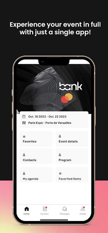 Instantly add contact details by scanning badges or making connection requests. Once connected between participants, create your own contact directory and exchange in real time via the app's instant messaging.