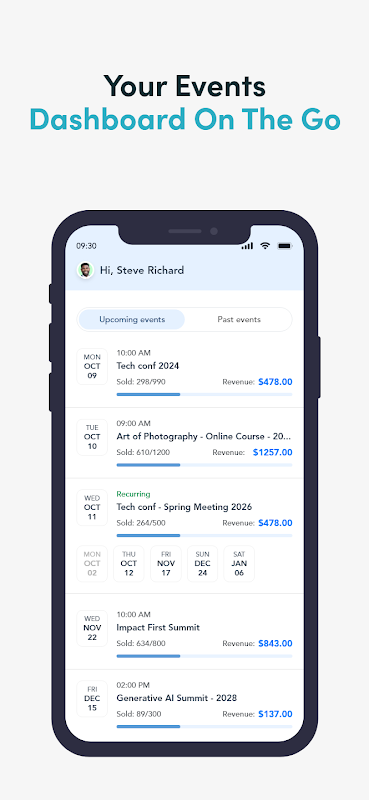 Event organizers can now monitor real-time ticket sales, revenues, check-in attendees, track attendance live, quickly sell tickets and merchandise on-site with the mobile app.