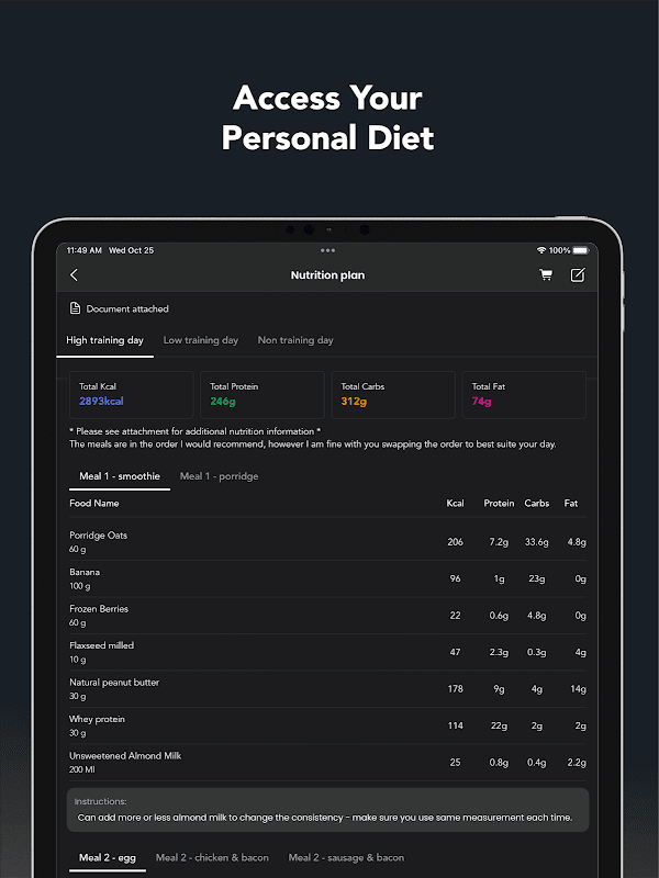 - Quick meal logging with a clean layout and saved items for faster entries.