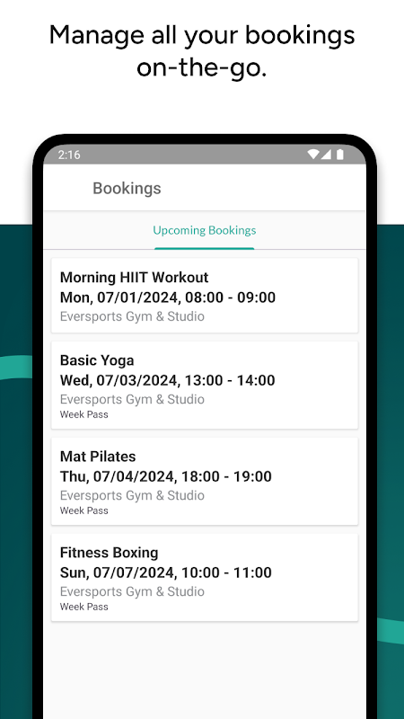 • Everything: with Eversports you will always keep track of everything. You define your favorites, book them in just a few clicks and know everything about your products and visits.