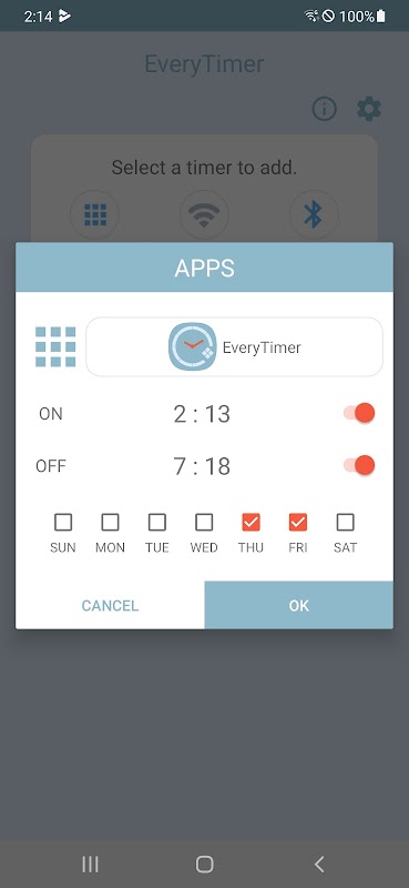 You can specify alarms such as applications, Wi-Fi, Bluetooth, and mobile data (4G/5G) to automatically run and terminate.