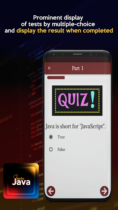 Java Quiz : A large and renewed number of common questions and answers to test yourself in Java with the result displayed at the end of the test to evaluate yourself and see how much you have benefited from the lessons within the application