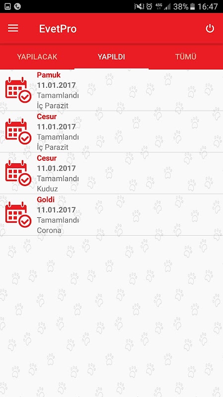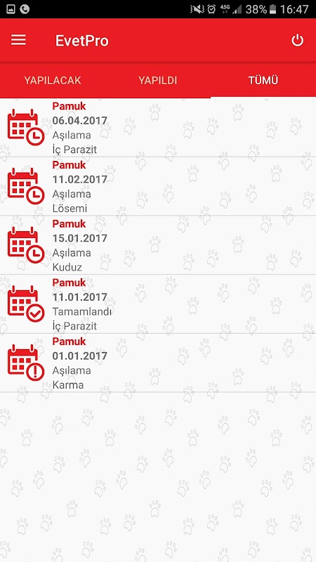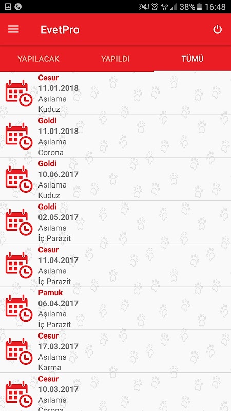 The vaccine, operations and all other e-vet appointments Pro can track via the mobile application.