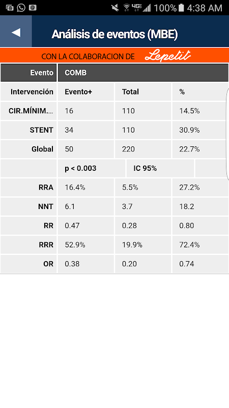 b) Metaanalysis: to evaluate with the method of Mantel Hanszel Peto the main effect of series of clinical trials. Trials may be selected using 4 criteria of search (acronym, drug/intervention, therapeutic group, disease) and each event can be analyzed individually or in an overview grouping essays with similar designs. The analysis can be saved in your personal archive.