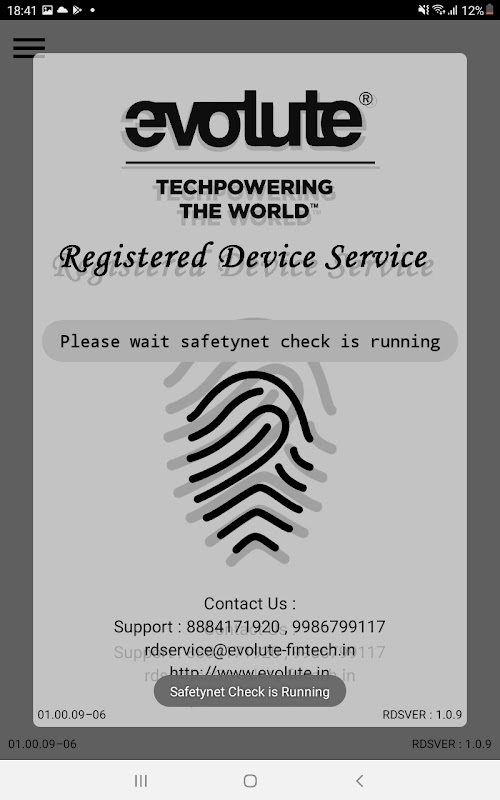 This is Registered Device Service (L0) for Evolute Devices with Fingerprint Scanner for devices LEOPARD, FALCON, IMPRESS, LILY and IDENTI5 provided by Evolute Systems Pvt Ltd. This application is required to use device with AADHAAR authentication. This application captures Fingerprint as per UIDAI guidelines for Aadhar Authentication and eKYC. RD Services for our devices enable your solutions and end users to validate their Fingerprint devices with UIDAI with the help of our Management Server. For registering the Finger print device with UIDAI, you shall require to be in possession of at least one unit of EVOLUTE device. By launching the application and connecting the device, RD services shall complete the necessary processes for registering your device with the UIDAI. RD Service is STQC certified as per UIDAI Registered Device Specification-V2.0.1. Devices are designed for the most ease use while finger placement. Devices are made to withstand large amounts of shock even free fall from as per fall test. In case of any error, you shall be given the appropriate error message with which you can approach our help desk as given below on any working day during office hours.