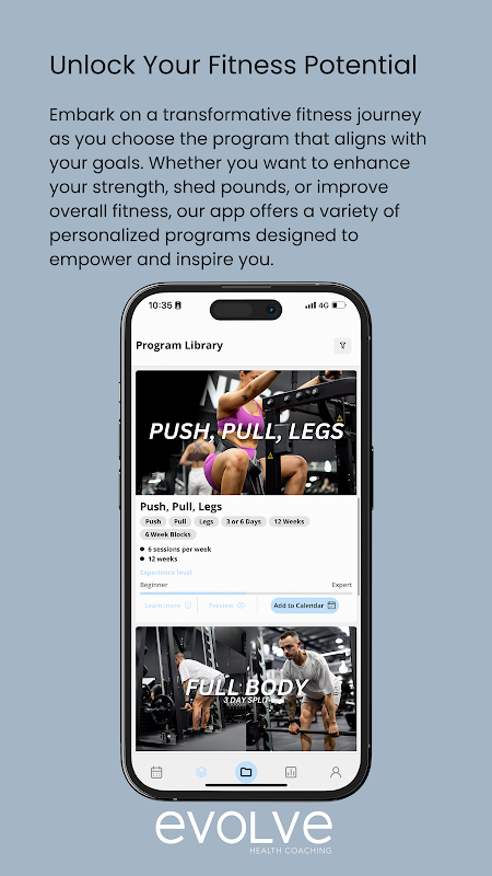 The EVOLVE app is the ultimate hub for your health and fitness needs. Whether you are a beginner or experienced gym goer, we have the program for you, and are constantly adding more!