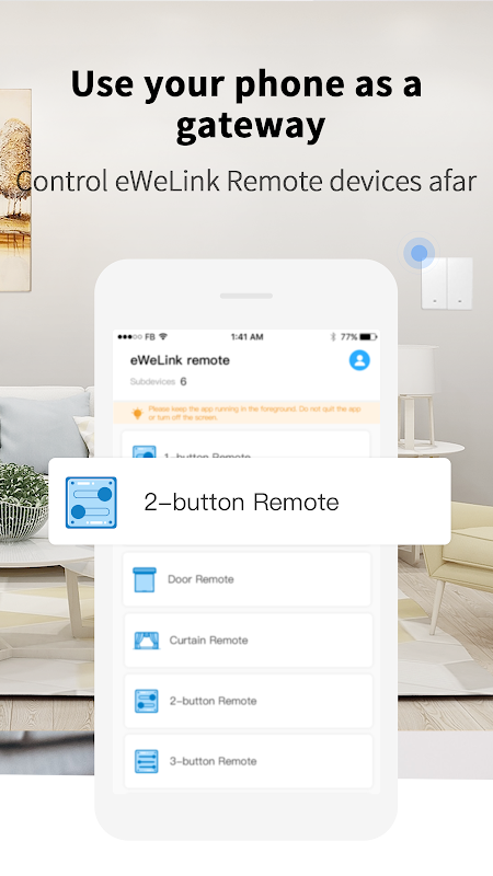 eWeLink Remote gateway app allows you to control eWeLink Remote devices afar