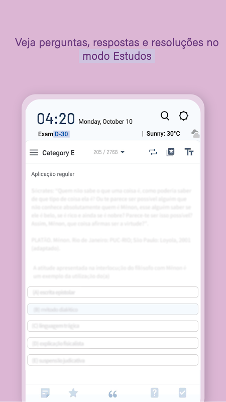 O Exabit não apenas fornece perguntas anteriores dos últimos dez anos na tela de bloqueio, mas também oferece perguntas de OX, materiais essenciais e a resolução para respostas corretas e incorretas.