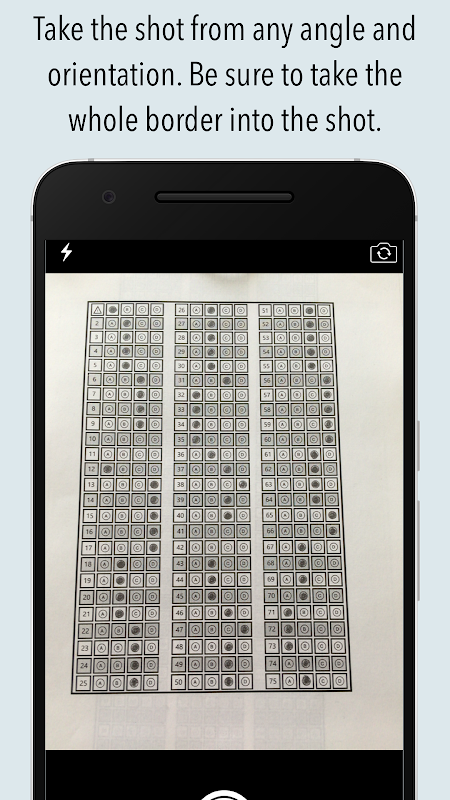 %100 success rate if used as described. Supports from 5 to 200 questions and 2 to 7 choices. Both horizontal and vertical sheets can be used (it is a first in this kind of application). Teachers and students can make their own sheets with our answer sheet generator (also a first). Right to left sheets (Arabic) support (again a first). Now with griddable questions support also.