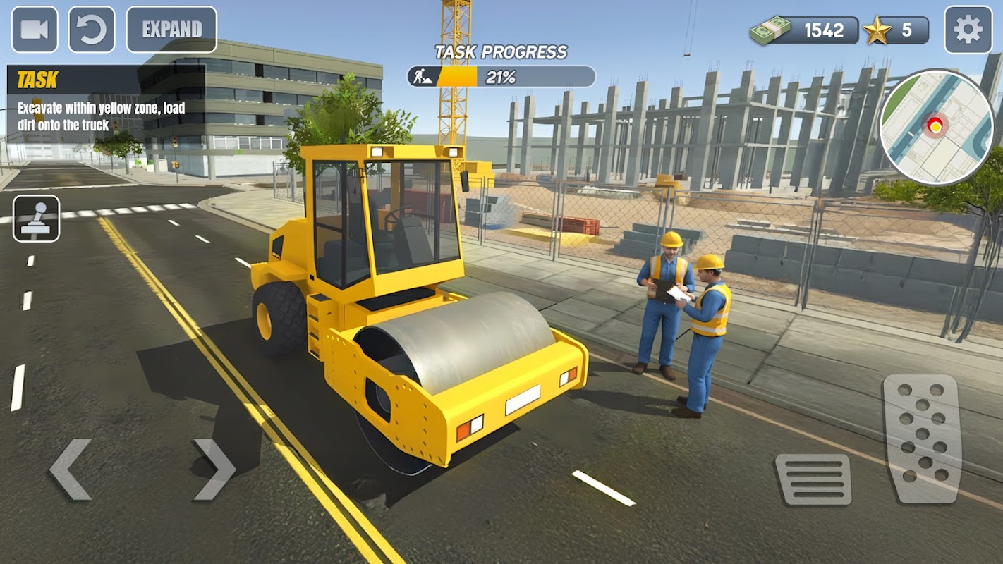 Operate heavy machines like loaders, dump trucks, and road rollers as you complete each construction task.