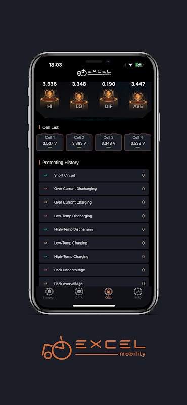 Excel Mobility provides mobile and nursing aids for the elderly and the disabled to provide intelligent battery management systems for wheelchairs, scooters, walkers, electric wheelchairs and boosters, which can be connected via Bluetooth to monitor battery status and collect data in real time Store and process information during battery operation, and exchange information with external devices, so that the following content can be seen intuitively during use: