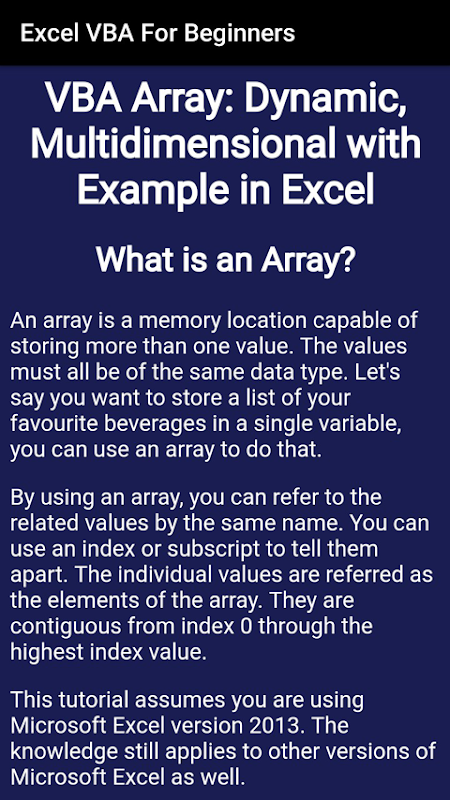 VBA Excel is a new tutorials app for the beginners and it will a lot to the beginners