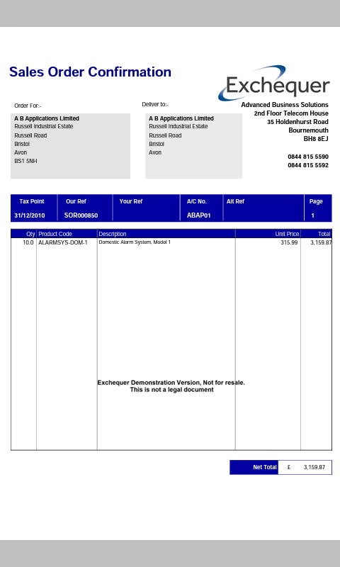eXchequer365 is a collaboration between Advanced Business Solutions and Konnekt IT Solutions Limited. Exchequer and ObjectDrill are trademarks of Advanced Business Solutions. eXchequer365 is an unregistered trademark of Konnekt IT Solutions Limited.