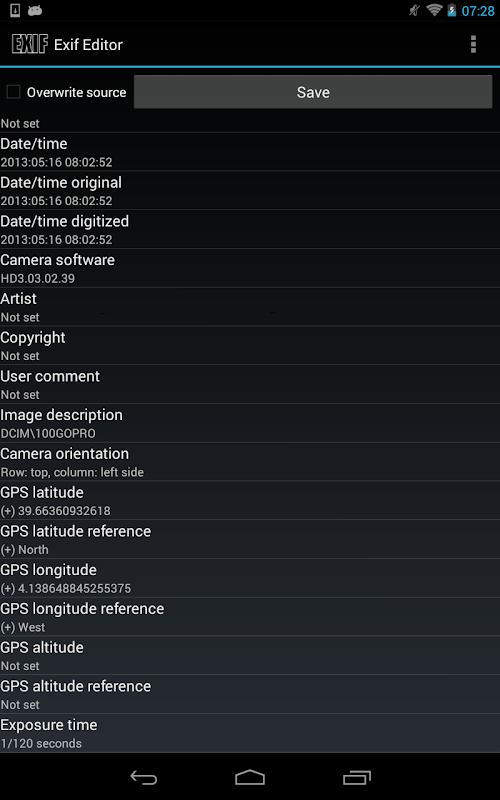 If you need to modify or add EXIF data please check out Exif Editor: market://details?com.teapps.exiftageditor
