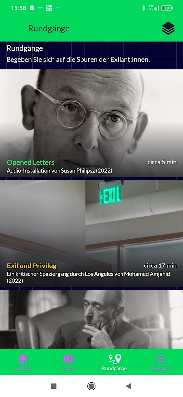 In more than 30 artistic and scholarly contributions, the app "Exit Exil" recalls the exile of German-speaking artists and intellectuals in the 1930s and 40s and builds a bridge to cultural workers living in exile in Germany today.