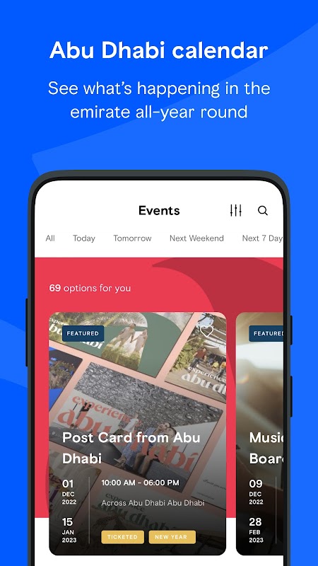 • Explore events happening in Abu Dhabi through the Abu Dhabi calendar section.