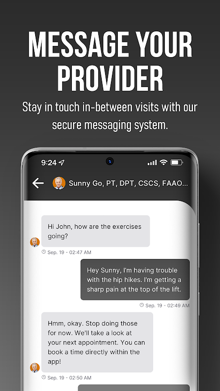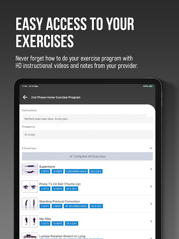 Using this app, you can access your personalized Home Exercise Program with HD Instructional videos. On the 'Messages' tab, you can securely communicate with your Experience Physical Therapy provider. As you make progress in your program, you'll earn virtual trophies and achievement badges to celebrate your milestones! Visit the 'Awards' tab to see your achievements and track your progress.