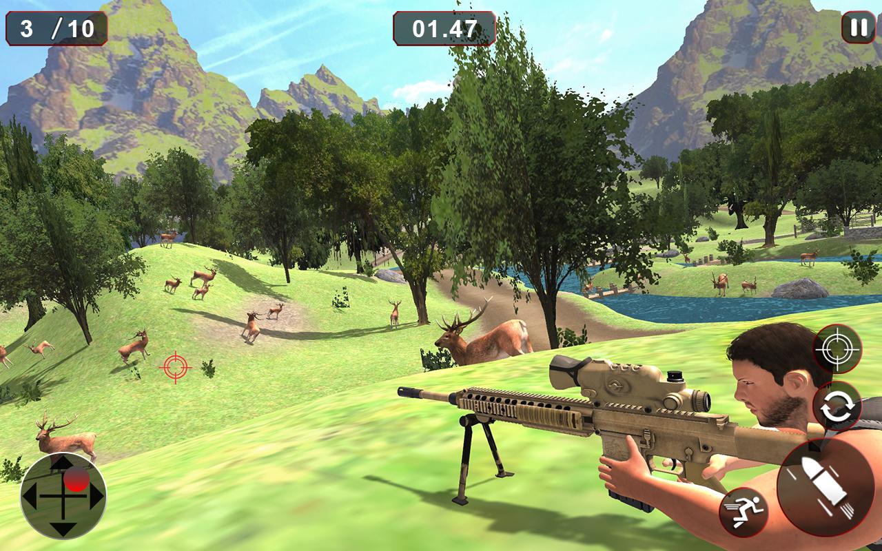 The game with full of thrills is just now one click away from you. This game consists of eye catching environments of jungle, Water Lake, deserts, snow etc. This game would be a great and wonderful hunting experience for those who love to play hunting games of jungle animals. Grab your shooting weapon carefully to attack at deer with the bullets. Don’t miss the chances to attack; this delay of seconds will make your opportunity to hunt a deer as it will run away in the trees in jungle. While playing this amazing deer hunting shooting game use your best sniper shooting skills to hunt a deer. So use your expertise and jungle animal hunting experience to enjoy the most amazing deer hunting game of 2017. There is a beautiful environment in the forest, real 3D simulation of trees, plants and grass in the surroundings.